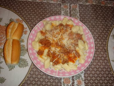 Ingredientes (para 2 porciones): 1/2 kg de papas, 150 gr. de harina, 1 huevo, 50 gr. de queso rallado, una pizca de nuez moscada, sal y pimienta a gusto.