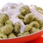 Después formaremos cilindros largos y cortaremos como de 1 cm con la ayuda de semolina. Para dar la forma característica utilizaremos un tenedor, deben tomar una de estas almohaditas presionar contra el tenedor y deslizar hacia abajo, con esto formaremos las estrías características que luego atraparán la salsa. El condimento clásico es sal, pimienta y nuez moscada, además pueden agregar un huevo, pero con el almidón de la papa y la humedad del zapallo no creo que lo echen de menos. Terminados los gnoquis, simplemente, los cocinarán en abundante agua hirviendo con sal, igual que cualquier pasta. Una buena manera de presentarlos es, una vez cocidos, verter en una budinera enmantequillada, agregar una rica salsa de tomates, mucho queso parmesano y gratinar, esta forma es rica y muy fácil de hacer, es clásico en Italia. Otra manera es hacer saltearlos en aceite de oliva y mantequilla con espinacas y, en definitiva, con las verduras y sabores que quieran, el tocino es buena opción, yo elegí espinacas con ajo. Los gnoquis deben caer al sartén sin escurrir totalmente, ya que el agua de cocción emulsionará la materia grasa y nos dará una rica y untuosa salsa. Una buena opción es hacer una reducción de crema y seguir con el mismo procedimiento anterior (la crema debe contener una concentración de sabores para que quede rico). Este plato lo monté en un gran azafate (plato ovalado), que me regaló mi nona, una herencia familiar, tiene como 100 años (Eso estuvo de más, pero me gusta mencionar la antigüedad del artefacto), para que tuviera un carácter familiar, en que cada uno se sirve una porción de gnoquis, un poco de espinaca y un rico lomo liso a la plancha.