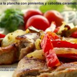 Lomo a la plancha con pimientos y cebollas caramelizadas