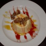 Flan de queso y nueces garrapiñadas