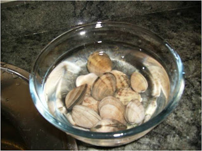 Lo primero, lavar y dejar en agua con un poco de sal las almejas o chirlas, para que saquen el arena que puedan tener dentro.