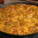 Cuando esté al dente echamos el arroz y dejamos rehogar durante 2 minutos. A continuación le añadimos el vino, la sal y la pimienta. Lo dejamos hasta que se evapore y agregamos el azafrán, el caldo light, las tiras de calamar, los guisantes, los mejillones y las gambas.