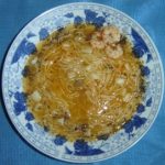 2. Luego, en el mismo aceite, se fríe las gambas, con los bigotes recortados y las patas. Mantener la cáscara y la cabeza. Una vez doradas, retiramos y reservamos.