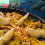 Se pone una pizca de azafrán, y echamos el arroz, repartiéndolo bien. Mantenemos el fuego vivo durante 10 minutos, ponemos las gambas que habremos pelado y clochinas/mejillones. Rebajamos el fuego.