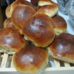 Amasar la harina, el azúcar, la mantequilla reblandecida, la levadura, la sal y la leche tibia hasta obtener una masa sin grumos, lisa y fácil de manejar. Poner a reposar la masa en un bol o recipiente algo engrasado y cubrirla con un paño húmero, dejar que duplique su volumen. Yo la metí en el horno apagado y cerrado, pero que había precalentado a 50º mientras preparaba la masa. Allí se quedó unas dos horas.  Después formar los panecillos e ir poniéndolos sobre una fuente de horno cubierta con papel vegetal, tampoco viene mal si está un poco engrasada. Para poder ponerle las semillas de sésamo, pasé una brocha por huevo batido y después impregné los panecillo, con el fin de que las semillas se adherieran perfectamente. Hornear a 200º durante unos 20 minutos … dejar enfriar y rellenar a gusto.