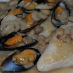 Panga rellena de marisco en salsa marinera