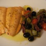 Salmon al horno con aceitunas negras