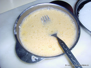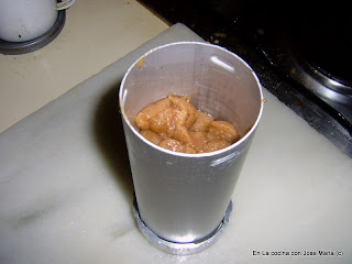 3.- Mezclamos el azúcar con la mantequilla, echamos la harina de golpe y removemos la mezcla añadiendo el huevo poco a poco, añadimos la cucharadita de canela que dará color a la mezcla, cuando la mezcla esté espesita y suelta la retiramos del fuego y la incorporamos a la máquina, en este caso utilicé una máquina pequeña de hacer churros Elsa, puede hacerse también con manga pastelera.
