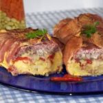 Pelamos y cortamos en cubitos las papas y las ponemos a hervir hasta que esten a PUNTO DE PURE, mientras tanto preparamos el relleno, ponemos a freirla cebollas y los ajos procurando que no se pasen del color transparente alli agregamos los pimientos picados fino, y 7 minutos despues agregamos la carne.