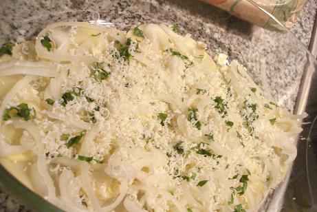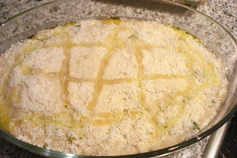 Espolvorear con queso parmesano y pan rallado, un poco más de aceite y listo para hornear.