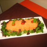 Cestita de pan con crema de alcachofas y salmon escabechado a la naranja y pimienta rosada