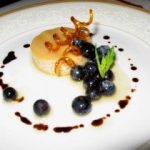Pescadilla rellena al hornao sobre cama de patata con souflé de mayonesa y salsa americana