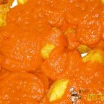 Hacemos la salsa de tomate poniendo los tomates cortados en cubitos en un poco de aceite,los freimos y bajamos el fuego. Añadimos la cebolla cortada en tiritas, las guindillas abiertas, sal y una pizca de azucar.