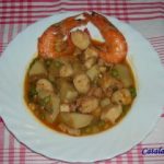 Cubrir con el aceite el fondo de la olla, sofreír lentamente todas las verduras, añadir los níscalos y seguir dando vueltas en conjunto, introducir la guindilla y las patatas haciendo que crujan al partir, volver ha dar vueltas para que se mezcle todo y añadir la pastilla de estarlux y el agua caliente, cubrir y poner a cocer 20m., pasado el tiempo, abrir y dejar reposar si veis que tiene mucho caldo dejar reducir hasta conseguir su punto.( tirando a espesitas )Deseo os guste.