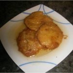 Jamoncitos de pollo en salsa a la naranja con patatas panaderas