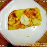 3* Poner en un molde para pan, papel aluminio, vierte la mitad de la mezcla de patatas, depues el relleno y finalmente la última capa de patatas.Se deja reposar ½ hora a temperatura ambiente.