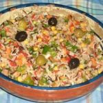 2 *de otra parte prepare el relleno: tritura aceitunas verdes, 50 g de cebollas, 2 cucharadas de perejil, atún o camarón.