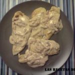 Filloas rellenas de pollo champis y bacon, gratinadas