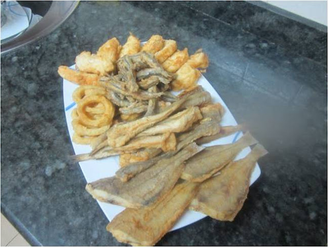 Los colocamos todos juntos en una fuente y llevamos a la mesa y recién fritos son una delicia, espero que os gusten besos