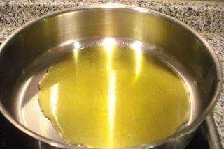 En una sartén, poner cómo 4 ó 5 cucharadas de aceite.