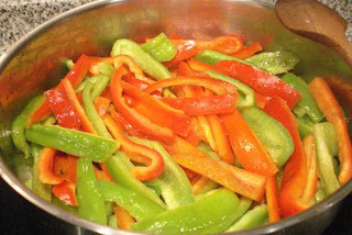 Hay que decir, que el ideal para cocinar esta receta, es disponer de los tres pimientos, es decir: amarillo, rojo y verde.