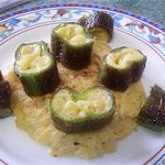 Pelamos, cortamos a cuadraditos, salamos y freimos las patatas junto con los calabacines en aceite de oliva abundante.
