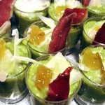 Cuando tenemos hecho el pincho, lo reservamos caliente y salteamos la pasta del día anterior, yo en mi caso unos tortellini de queso ricotta y espinacas, estos de pasta fresca también de cualquier super, y a la vez unas cuantas cerezas.