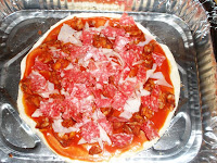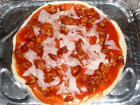 Pizza casera de berenjena, bacon y cherrys