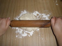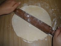 Espolvorear un poco de harina en la mesa y estirar con el rodillo dando forma redondeada: