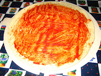 Tras dejar reposar la masa , extender con un pincel el tomate concentrado, las láminas de mozarella (finitas) y el resto de los ingredientes. Encender el horno al 2 y 1/1 y en 5 minutos lista¡¡¡.