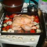 Precalentar el horno 10′, y cocinar durante 1 hora 30 min. aproxim. a 180°. Cada 10-15 minutos salsear (rociar, bañar el pollito) con el brebaje preparado. Acá esta el secreto, cada tanto salsear, salsear y salsear. Que lindo es salsear !!!!!!!!!!!!