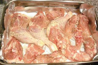 Disponer el pollo en la bandeja,