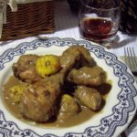 Pollo de corral a la cazuela con frutas desecadas y nueces