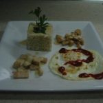 Arroz con pesto de calabacinos, sepia al curry, pasas y aliolì de curry