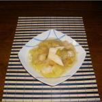 g. Con carne: pechuga de pollo o pavo. Limpiar y asear el ave elegida y saltearla unos minutos con aceite de oliva. Añadir a la porrusalda al final.