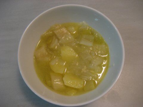 2. En una olla poner varias cucharadas de aceite de oliva. Sofreír los puerros, el diente de ajo y la cebolla durante unos minutos. Añadir la patata y el agua necesaria para cubrirla. Salar al gusto. Hervir.