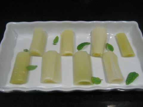 2. Hervir los puerros para que queden tiernos. Enfriar. Retirar las dos o tres capas exteriores que son más fibrosas (reservarlas para usarlas en una porrusalda o en cualquier otro guiso)