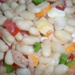 3. Picar en pequeños dados la cebolla, los pimientos y el tomate. Aliñar con aceite, vinagre y sal al gusto y generosamente para que ejerza su función de vinagreta.