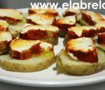 2. Las patatas, las lavamos bien, las envolvemos en papel film y las ponemos en el microondas a máxima potencia durante 7 u 8 minutos.