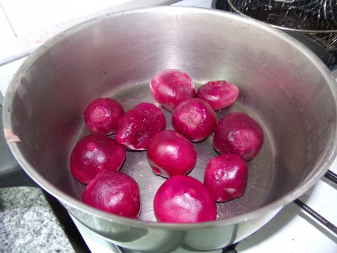 Hervir remolachas no muy grandes hasta que estén blandas. Hay dos maneras de seguir: