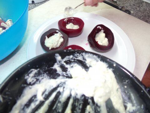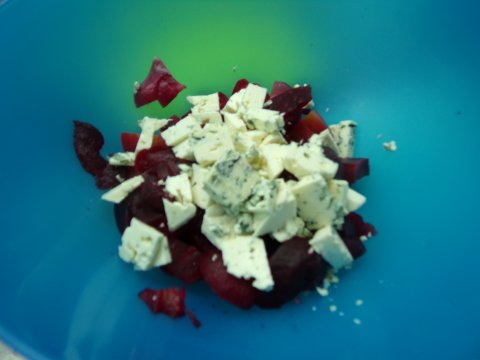 1) cortar en trozos no muy pequeños las remolachas y agregarle abundante queso azul. Preparar como ensalada común.