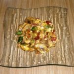 Tortilla con verduras al horno, queso y reducción de vinagre de frambuesa