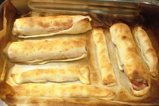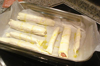 Repetir la operación con las otras salchichas y disponer todo en una bandeja de horno.