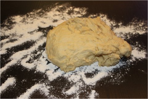 A partir de ahora trabajaremos a mano y sin máquina. Necesitaremos enharinar una superficie lisa y amplia sobre la que depositaremos la