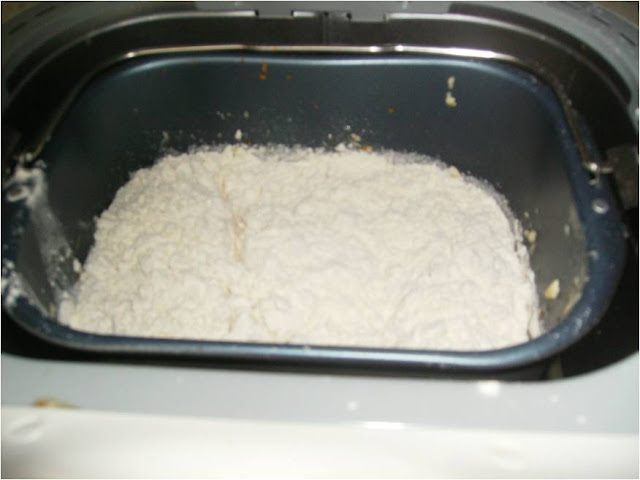 He puesto en la panificadora, la leche con la levadura, he añadido el bol con los huevos y demás ingredientes.
