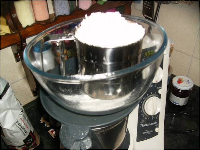 He añadido la harina del roscón tamizada con la sal y lo he dejado 10 minutos amasando, todo esto lo puedes hacer a mano y amasado.