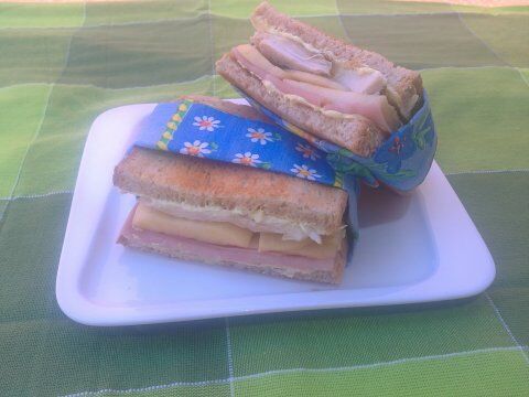 Cubrimos con otra rebanada de pan untada con salsa de yogur y curry.
