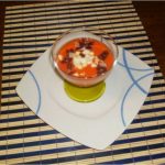 Salmorejo , tartare de kumatos, caviar de algas y aceite de aguacate