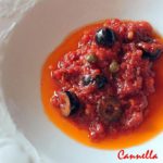 400 gr. de tomate frito casero (suelo tener un poco hecho, es muy útil), 4 tomates secos, 4 filetes de anchoas, 1 cuch. de alcaparras, 2 dientes de ajo, 1 guindilla picada (si os sentís valientes que sean 2), aceitunas verdes y negras a trozos y sin hueso, 1 cebolla, aceite, pimienta negra molida y sal … además de los espaguettis.
