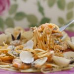 – Emplata los espaguetis y con ayuda de una cuchara, reparte la mezcla de la carne y las verduras por encima de ellos.